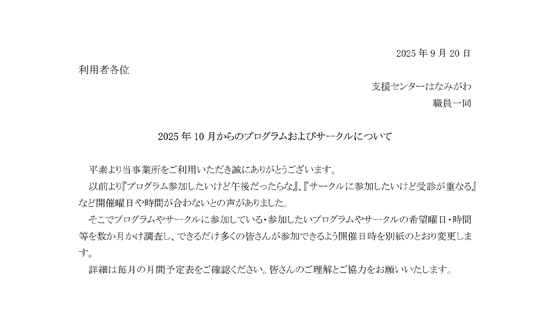 2025年4月からの支援センターはなみがわのについて | PDFファイル![]() |