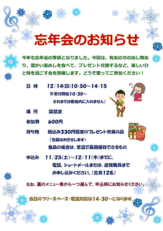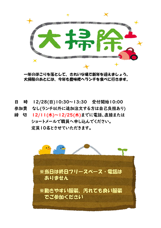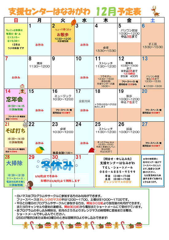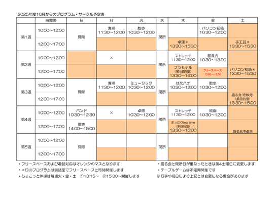 ※ 閉所日に祝祭日があたったり平日でも利用できない日がありますので来所の際